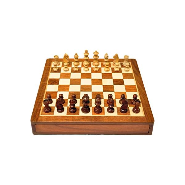 Palm Royal Handicrafts Drawer Wooden Chess Board With Set Made With Finest Indian Rosewood 12 X 12 Inch For 13 Years Wellness Store